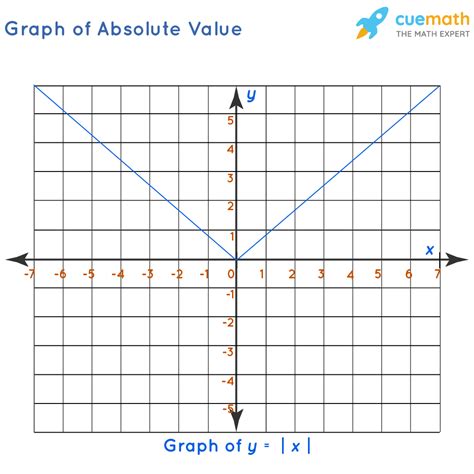 Graphing the absolute function value can help visualize its behavior and properties. The graph of y = |x| is a V-shaped curve that opens upwards, with a vertex at the origin (0,0). The graph is symmetric about the y-axis, reflecting the property that |-x| = |x|.