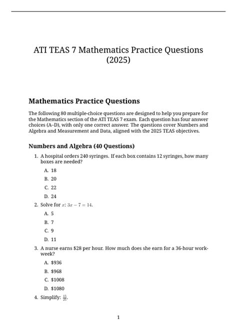 Preparing for the ATI TEAS Math section can be a daunting task, but with the right strategies and practice, you can excel in this crucial part of the exam. The ATI TEAS (Test of Essential Academic Skills) is a standardized test widely used by nursing and allied health programs to assess the academic readiness of prospective students. The Math section, in particular, evaluates your quantitative reasoning skills, which are essential for success in healthcare education and practice.