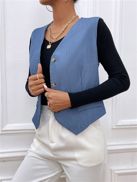 - Casual Chic: Pair the Blue Vest Womens with a simple white t-shirt and jeans for a casual yet stylish look. This combination is perfect for a day out with friends or a casual dinner.