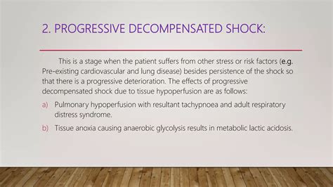 Shock is a critical medical condition that occurs when the body is unable to maintain adequate blood flow to vital organs. This can lead to a cascade of physiological changes that, if not promptly addressed, can result in organ failure and even death. Understanding the different types of shock, particularly compensated vs decompensated shock, is crucial for healthcare professionals to provide timely and effective treatment.