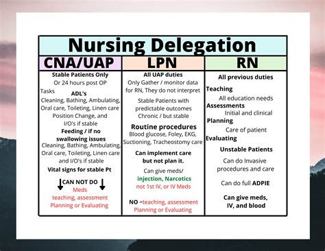 - Scope of Practice: Nurses must delegate tasks within the scope of practice of the delegate. This means that tasks should be delegated to individuals who have the necessary skills, knowledge, and legal authority to perform them.
