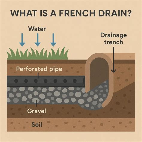 A French drain is a simple yet effective drainage solution that consists of a perforated pipe surrounded by gravel or rock. The pipe is placed in a trench, which is then backfilled with gravel. Water seeps into the pipe through the perforations and is directed away from the building, typically to a lower-lying area or a sump pump. This system is named after its inventor, Henry French, who popularized the concept in the 19th century.