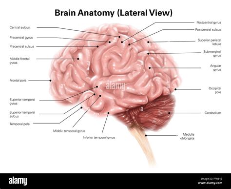 The lateral view of the brain reveals several key structures that are essential for understanding brain function. These structures include the frontal, parietal, temporal, and occipital lobes, each with its own specialized roles. The frontal lobe, located at the front of the brain, is responsible for executive functions such as decision-making, problem-solving, and motor control. The parietal lobe, situated behind the frontal lobe, plays a crucial role in sensory processing, spatial awareness, and navigation. The temporal lobe, located on the sides of the brain, is involved in auditory processing, memory, and language comprehension. Finally, the occipital lobe, at the back of the brain, is primarily responsible for visual processing.