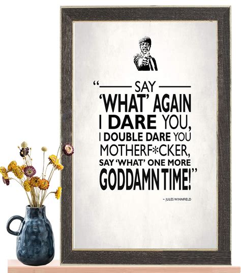 - "Say 'what' again. Say 'what' again, I dare you, I double dare you, motherfucker, say 'what' one more Goddamn time." - This line from Jules Winnfield is a powerful example of his character's intensity and determination. It's often quoted in situations where someone is challenging another person's authority.