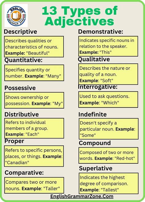 - 13 types of adjectives